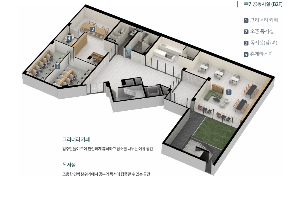 남다른 디테일의 차별화된 커뮤니티 공간을 마련합니다